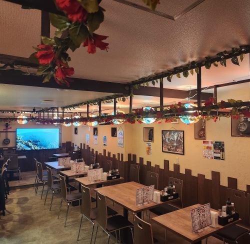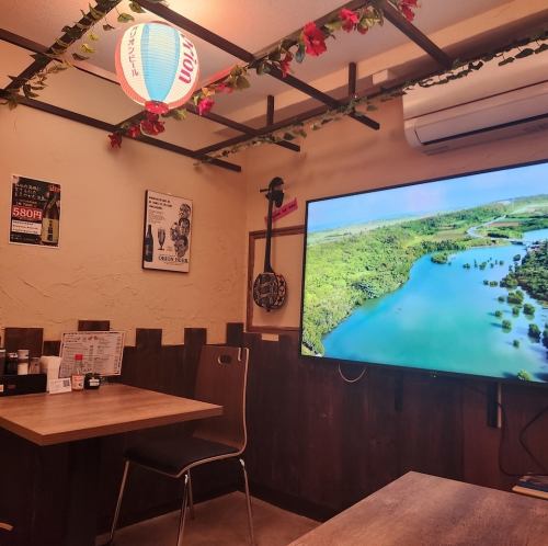 [Leave your banquets to us! Enjoy a special moment in a spacious space] Our restaurant offers banquet-style dining, with four-person tables that can be connected together to accommodate small or large groups.It is equipped with a 65-inch 4K monitor that can be used for video playback, slideshows, and other presentations.Enjoy a special time with Okinawan cuisine and warm hospitality.